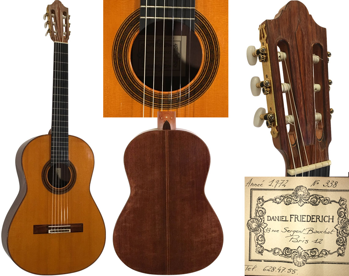 This is one of those Friederich that ‘has you at the first note’. You know the ones. You start to tune it up for the first time and already you are beginning to grin, then she is fully tuned and you hit the first few notes and you already know you have something special in your hands. Built in 1972, during what might be called his “Spruce period”, and well enough into his career that he really had honed and refined his capabilities, this is a ‘quintessential’ level Friederich. It has some signs of prior ownership but appears otherwise to be in original condition with no cracks or repairs noted. A hauntingly lovely voice and a comfortable action will bring a smile I would think not only to any Friederich lover ( and who isn’t?) but really anybody who can remotely appreciate why a fine guitar is so special would also immediately ‘bond’ with this guitar. This is why Friederich guitars are so adored. His so called ‘Grand Concert’ model of course…