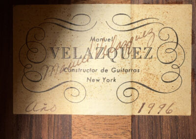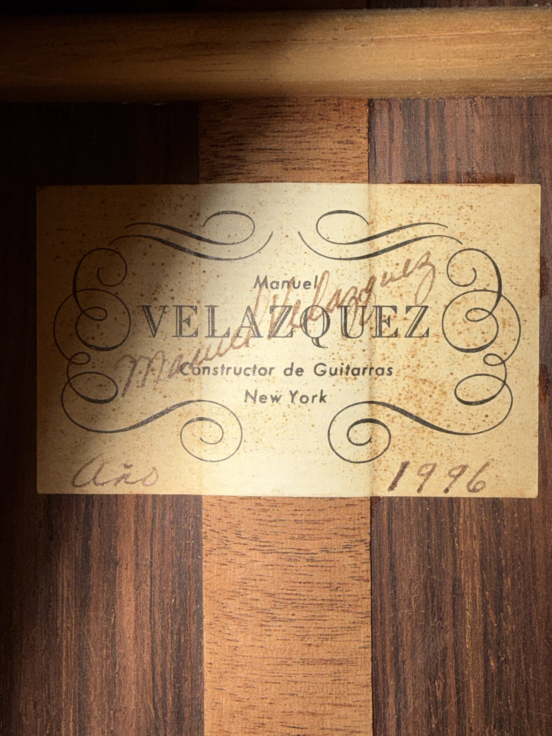 I recall a conversation where the story was relayed about the unfortunate theft of a number of signed Velazquez labels years ago, some of which have showed up on Velazquez copies. This made Manuel incredibly sad, mainly because he could not believe human beings would do such a thing. That is what made him such a lovely person. He believed in people. And his guitars showed that love of humanity.