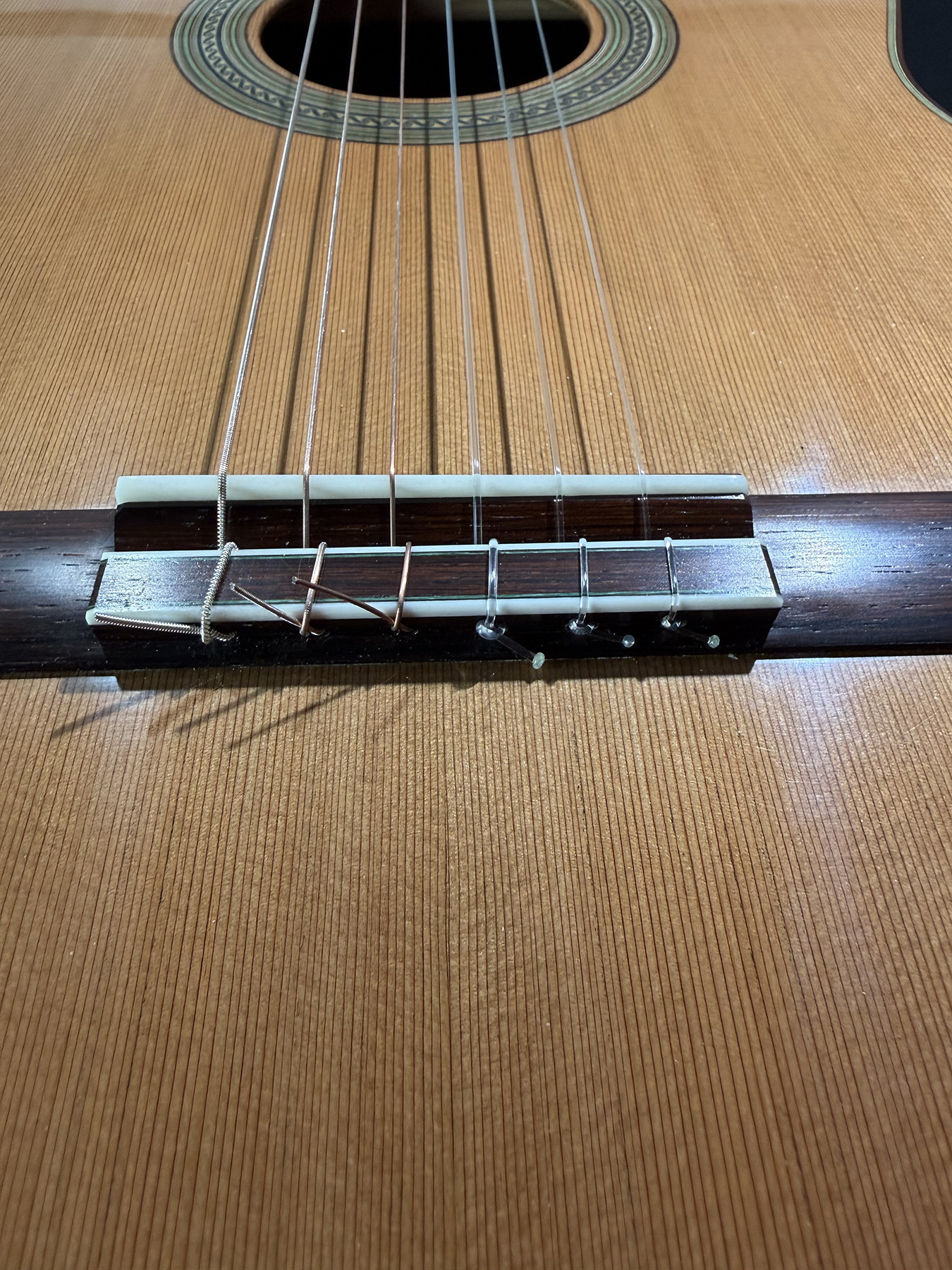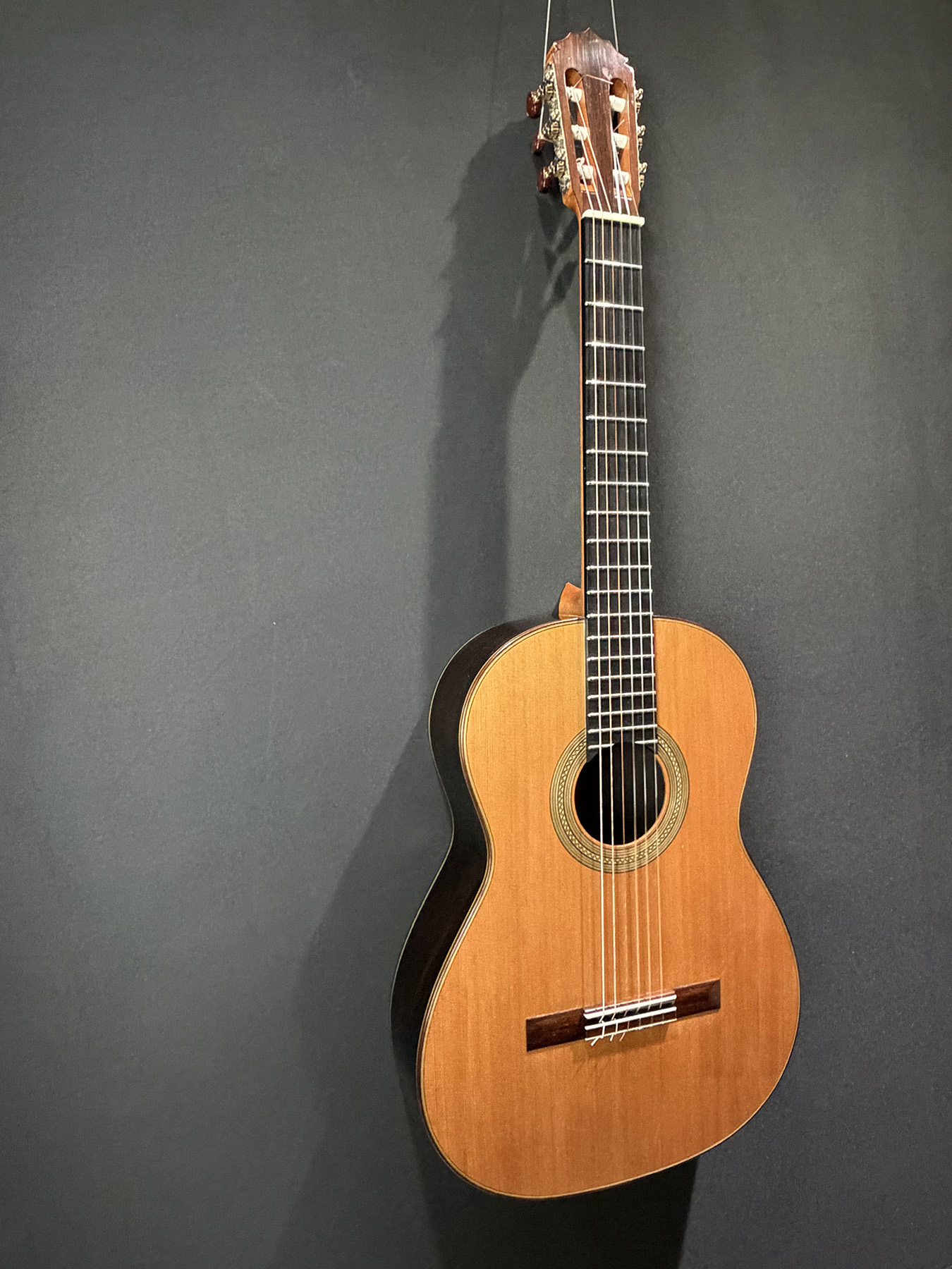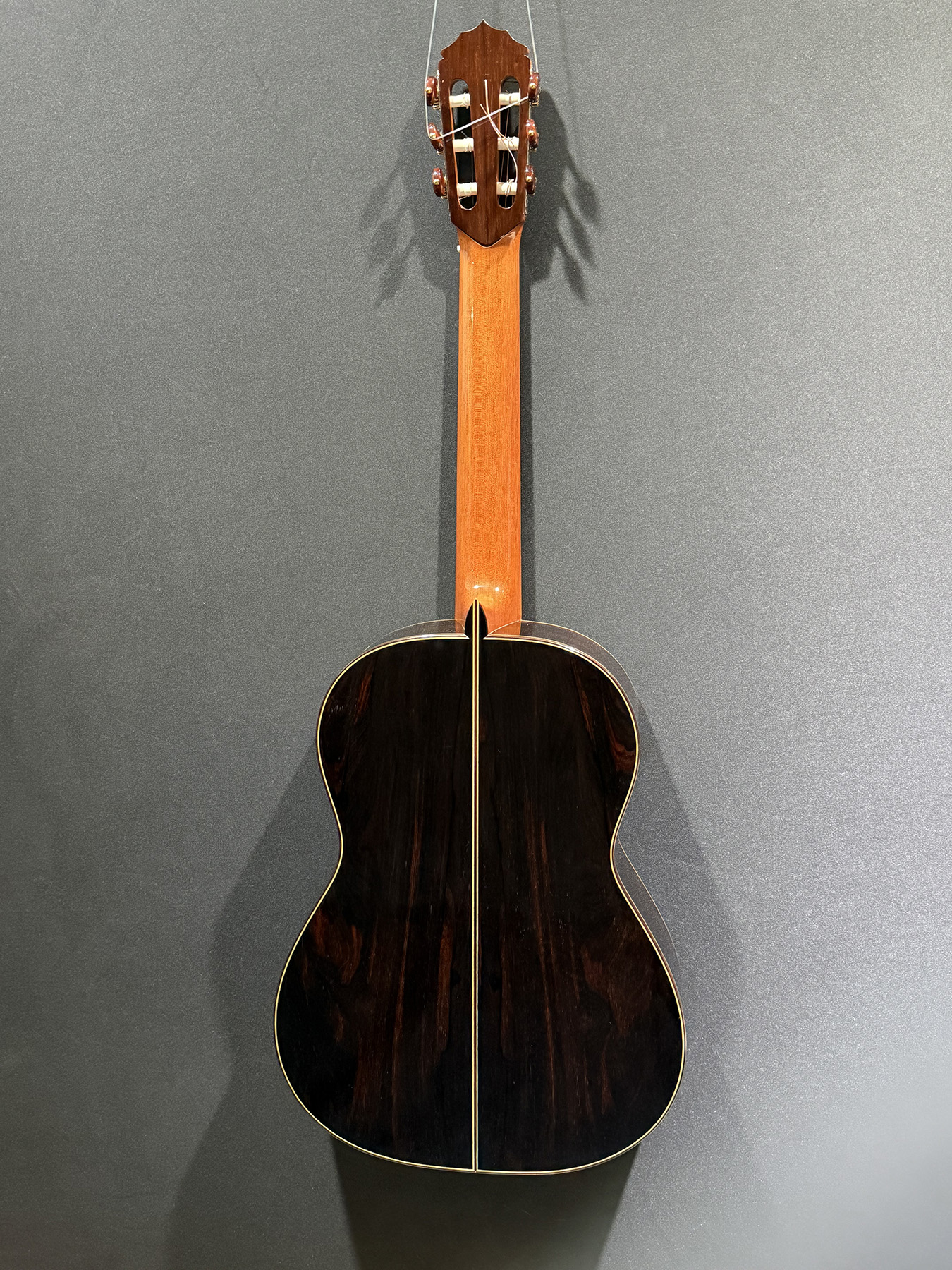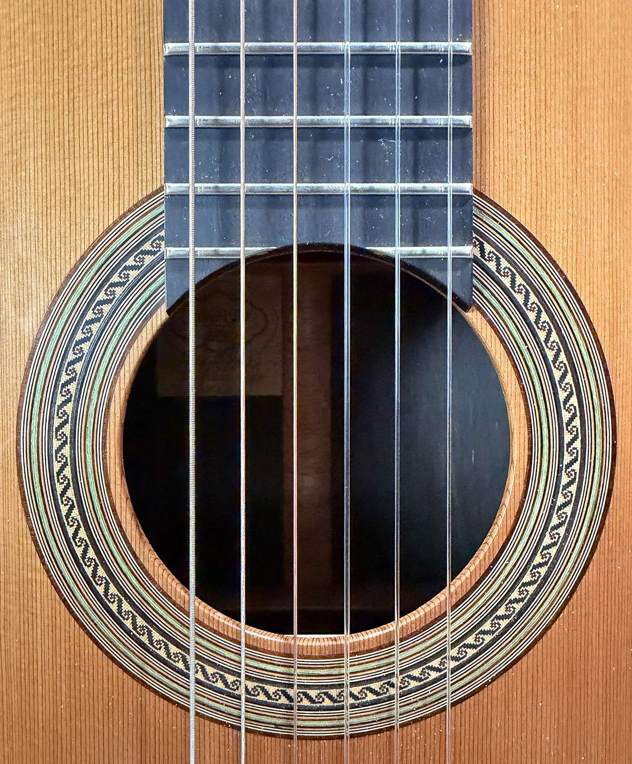 As always the tone is the most important aspect, no matter how well crafted the guitar may be, and this guitar pleases the ear from the first note. By a stroke of luck a very fine player happened to be visiting the shop when this arrived and I was able to sit back and hear it played as if I was in the audience. The tone was rich and lush and I could appreciate Jeff’s open harmonic bar design and how he uses it to enhance the sound. The neck is shaped very comfortably in fact it reminded me of a Romanillos I recently sold.