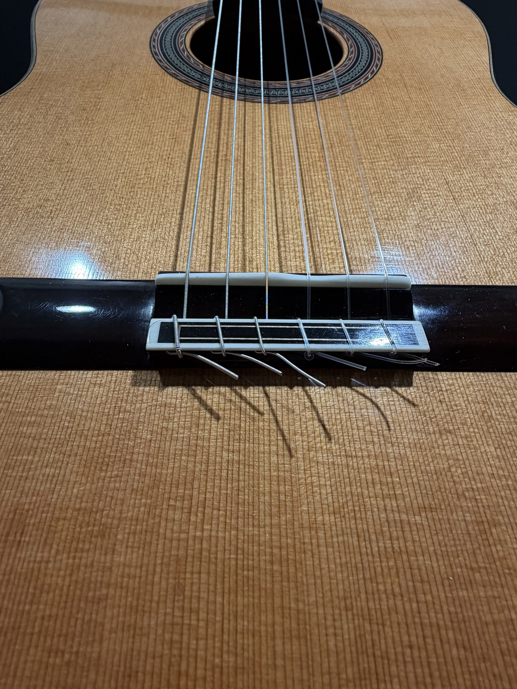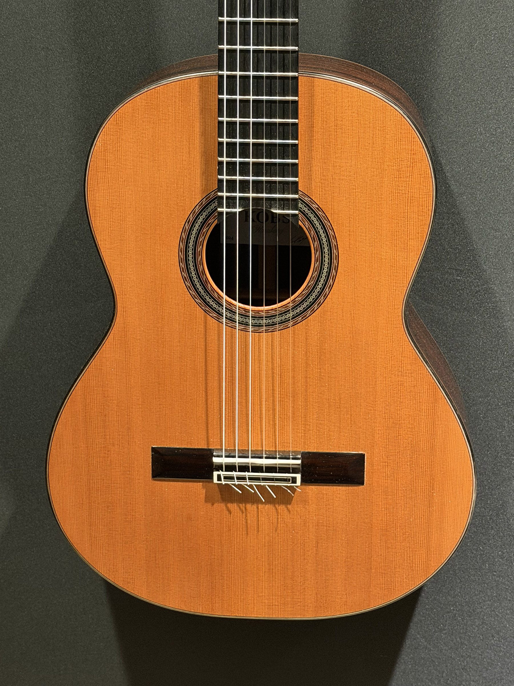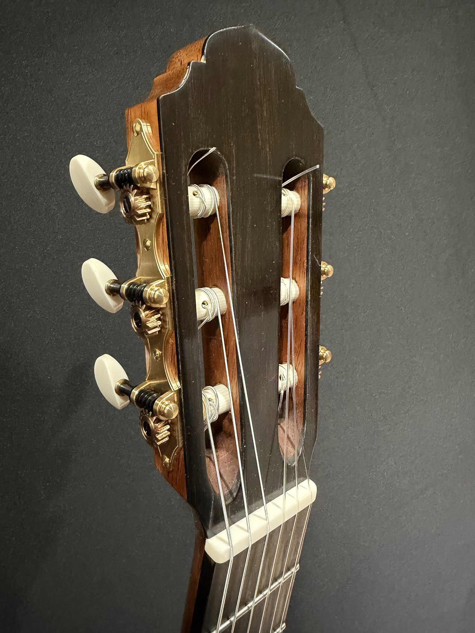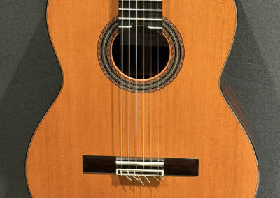 This guitar is in what I would call near new condition, one or two light marks on the top, same on the back, nothing really to note, it presents ‘as new’ when you take it out of the case. Lovely to hear and play, a fine example of a German Cedar Double top in fantastic condition. I do not expect this to be in the shop long…