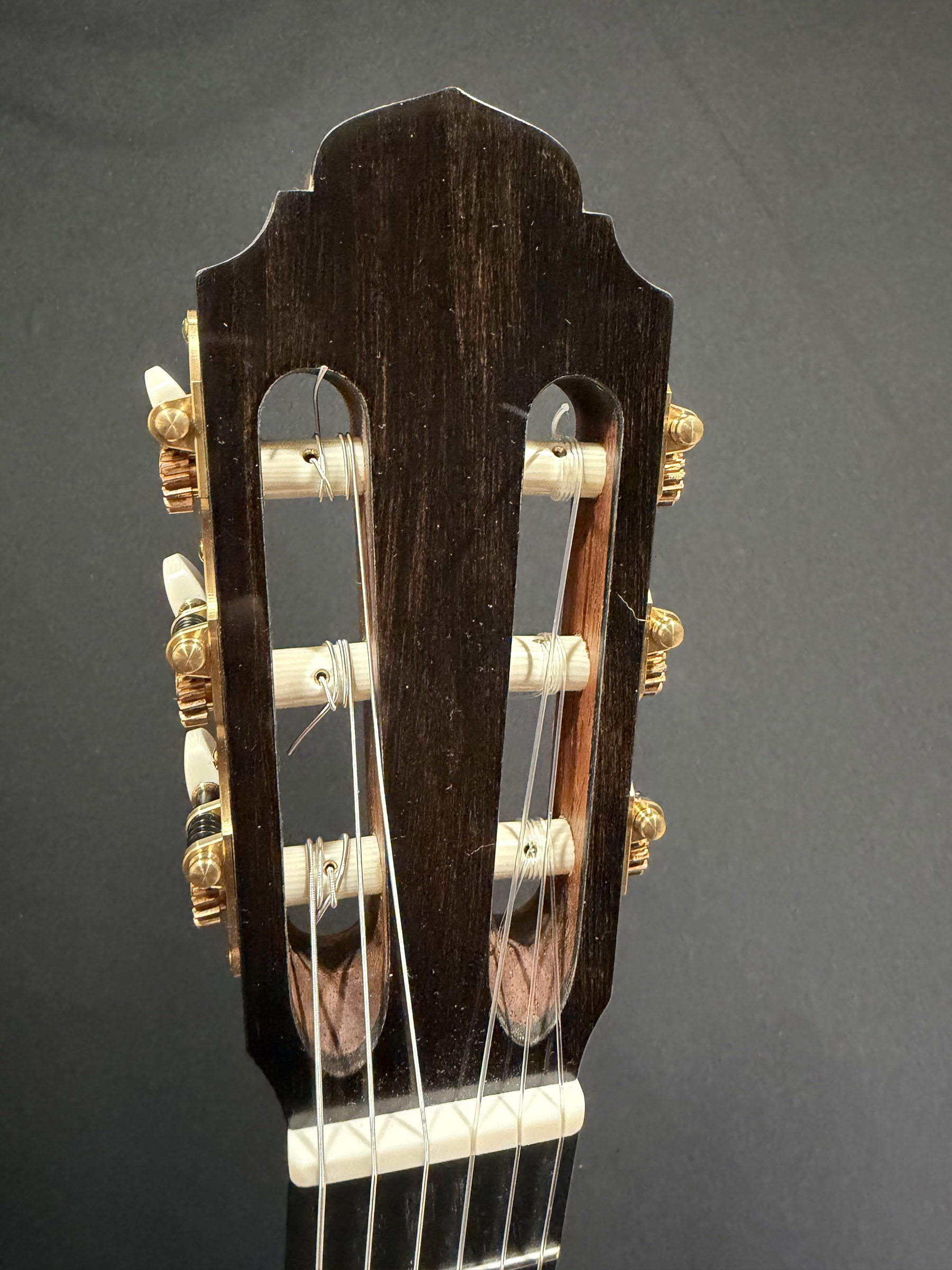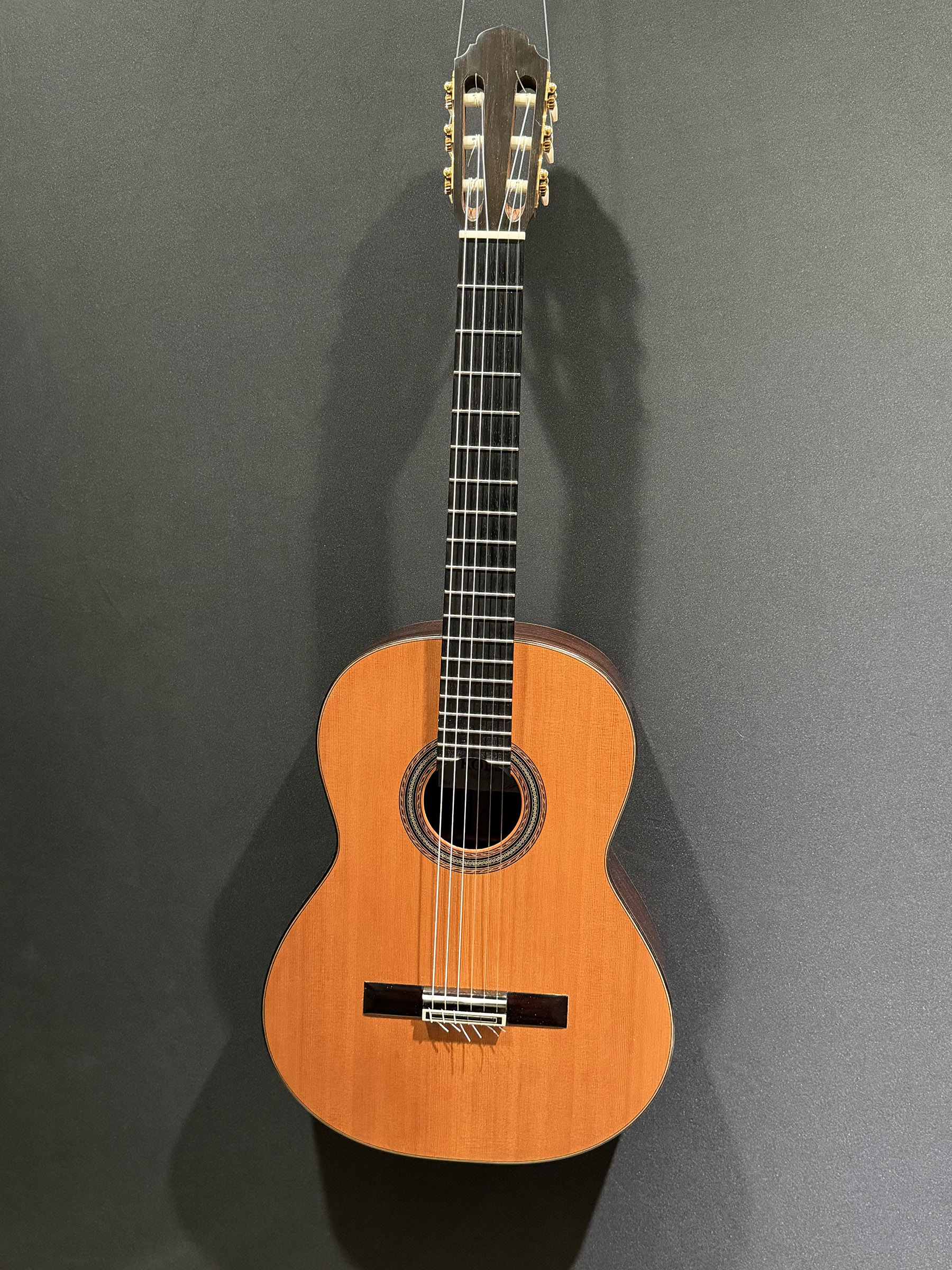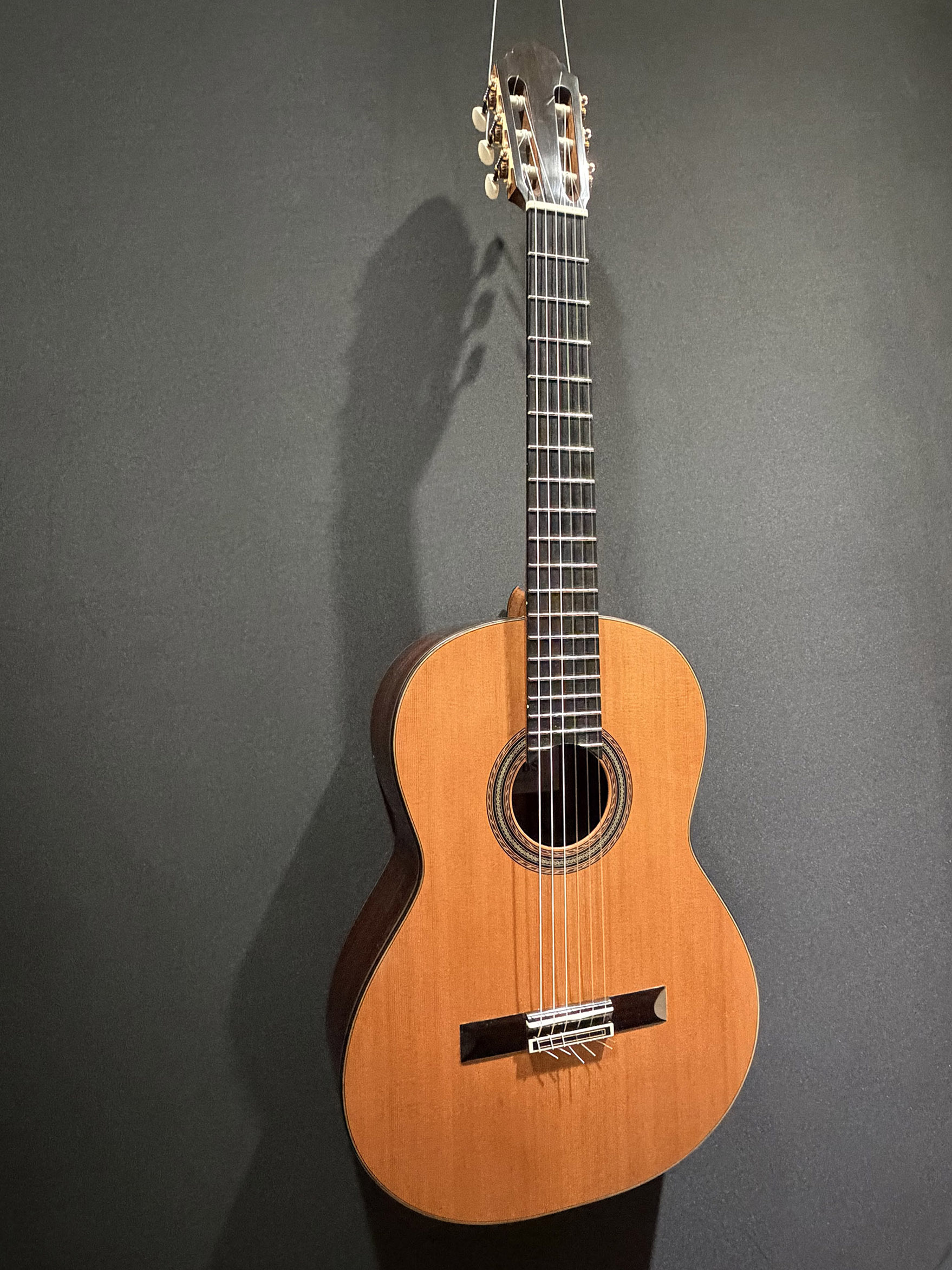 This guitar is in what I would call near new condition, one or two light marks on the top, same on the back, nothing really to note, it presents ‘as new’ when you take it out of the case. Lovely to hear and play, a fine example of a German Cedar Double top in fantastic condition. I do not expect this to be in the shop long…