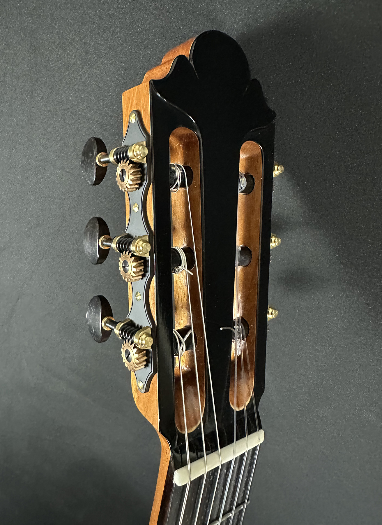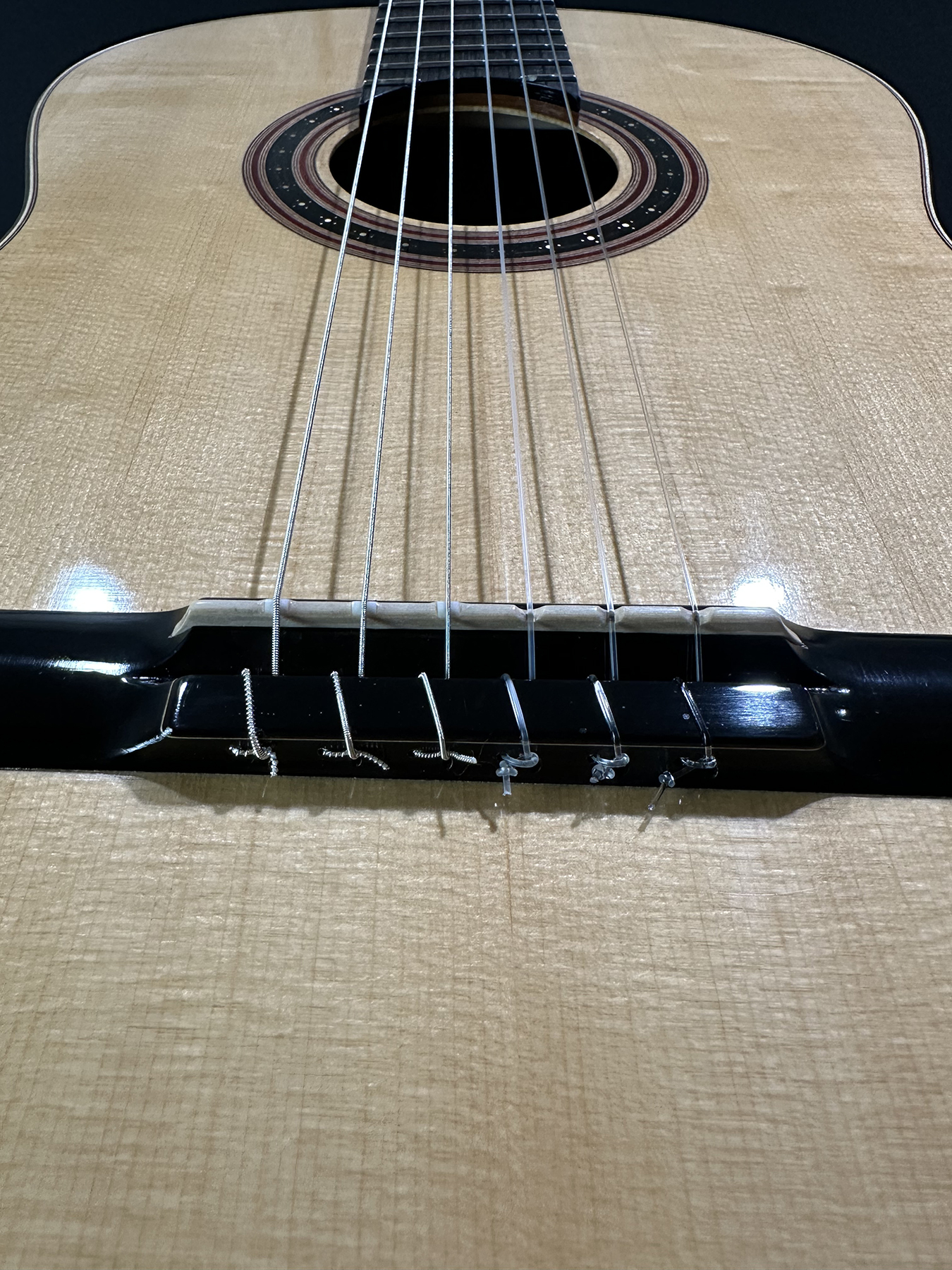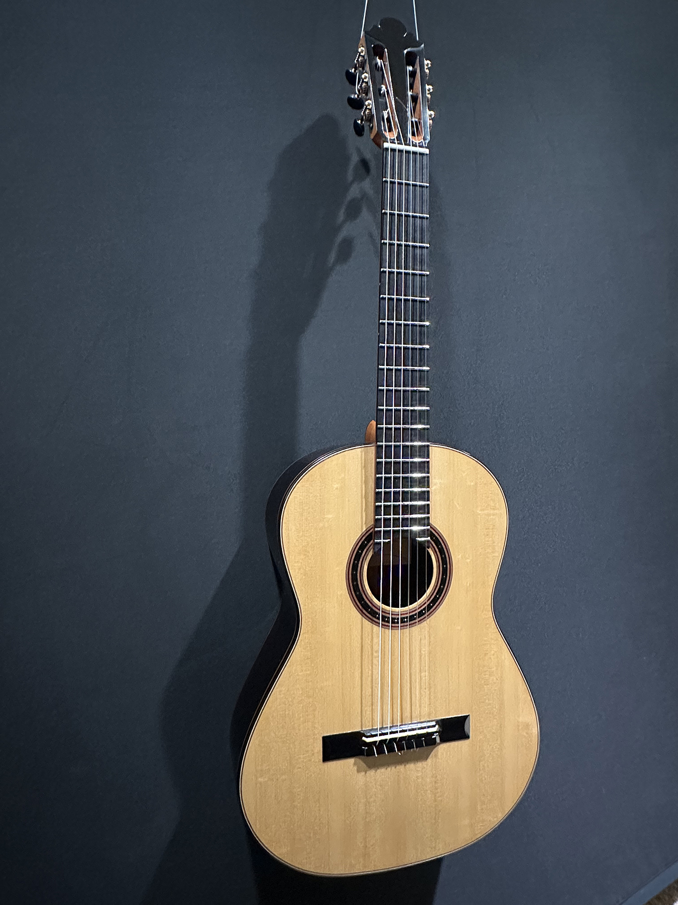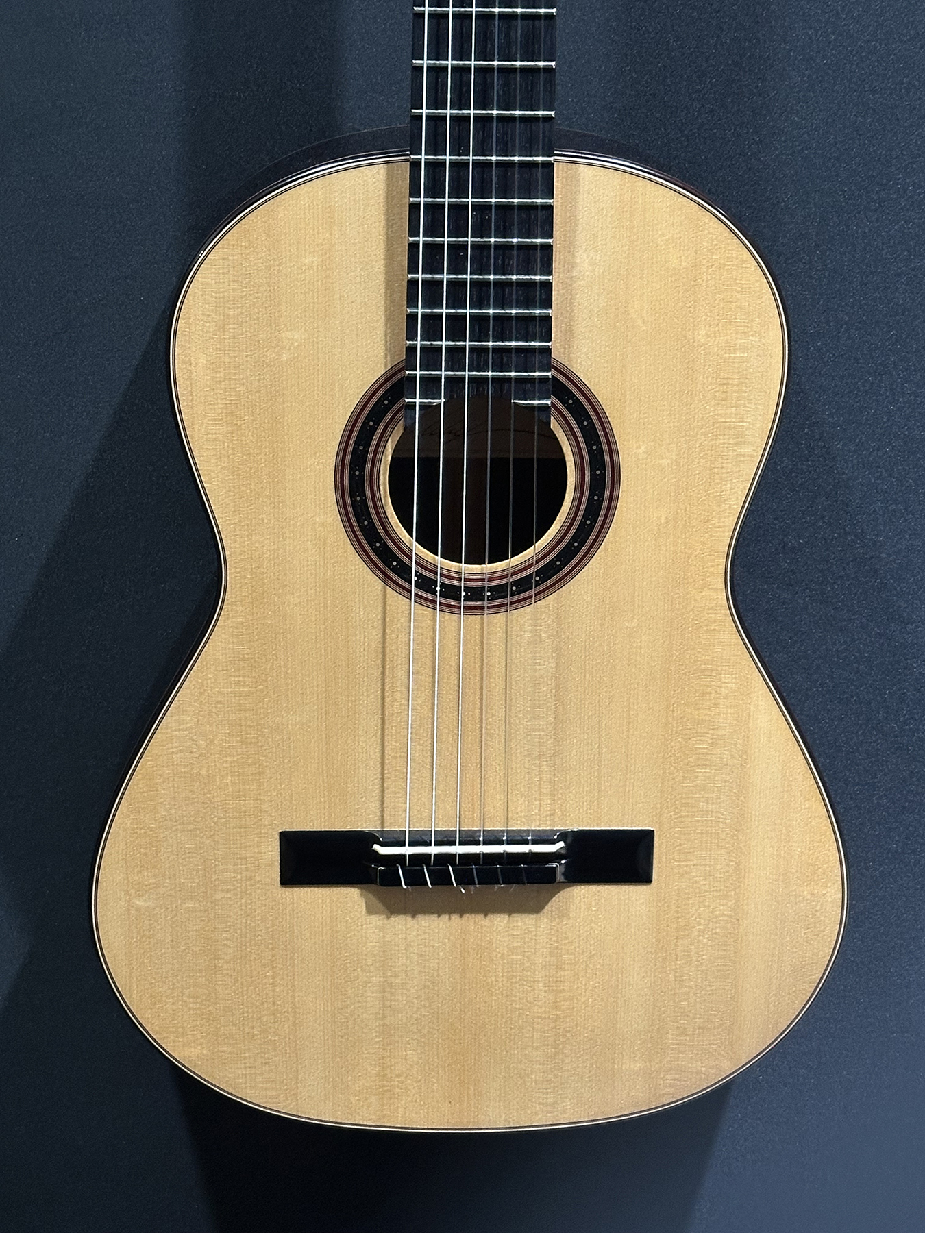 I should mention, that Spruce double tops are particularly challenging to build well, and so to have a guitar this incredible, and at the same time, to have it be a Spruce one, is absolutely incredible. The guitar is feather light, think in your mind the lightest guitar you have picked up. OK? Now envision an even lighter guitar! It is so featherlight that every note activates every aspect of the instrument, the entire instrument is involved and you fine yourself ‘feeling’ as much as ‘hearing’ the notes.