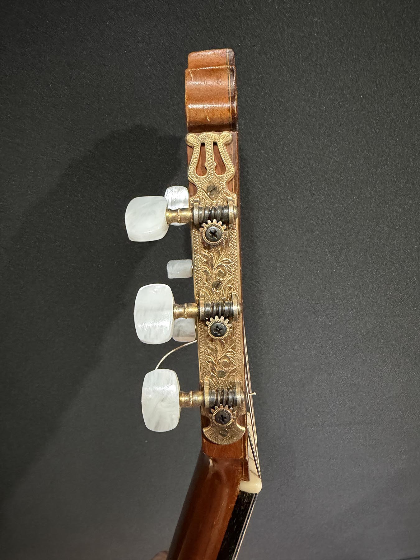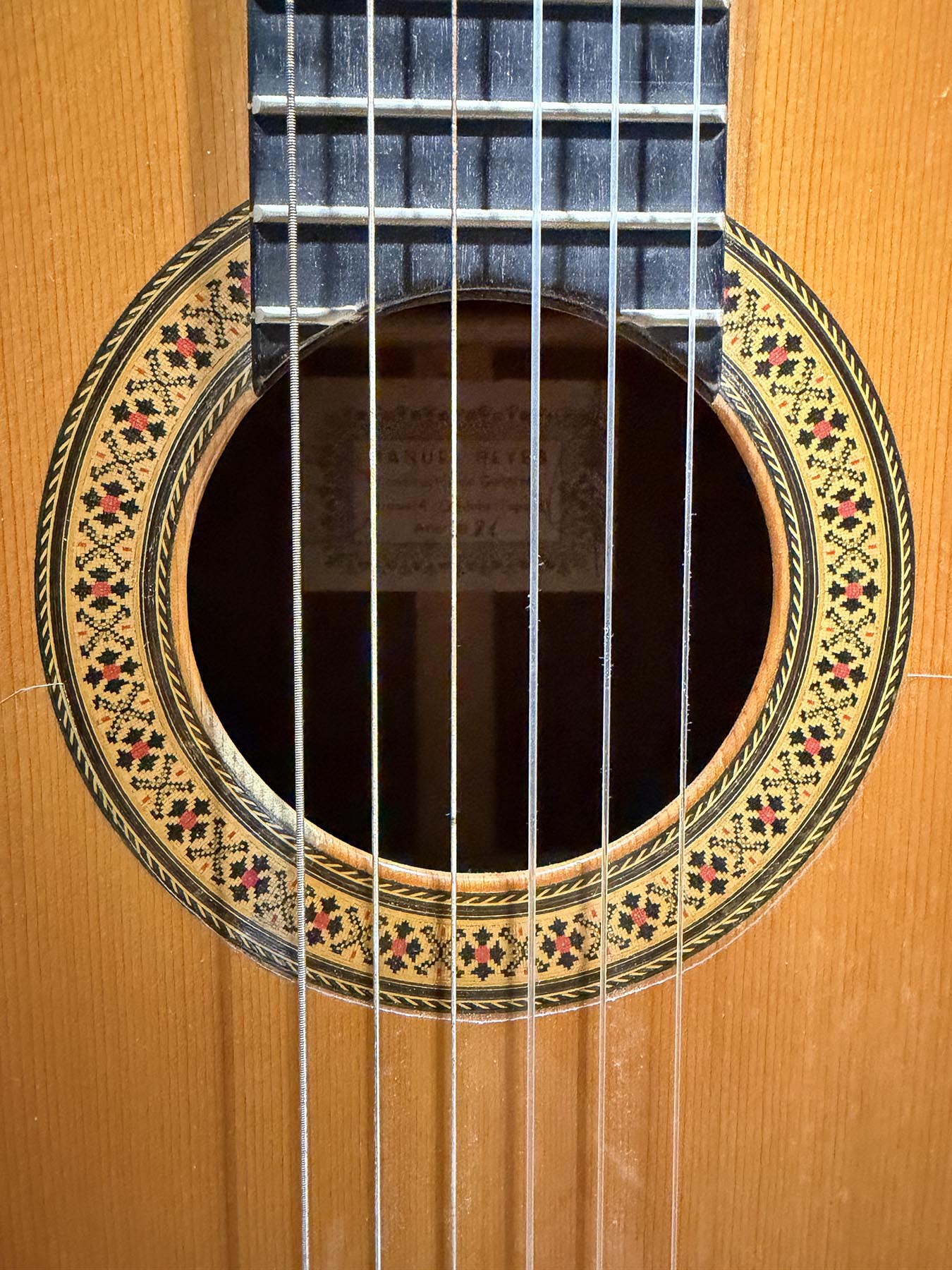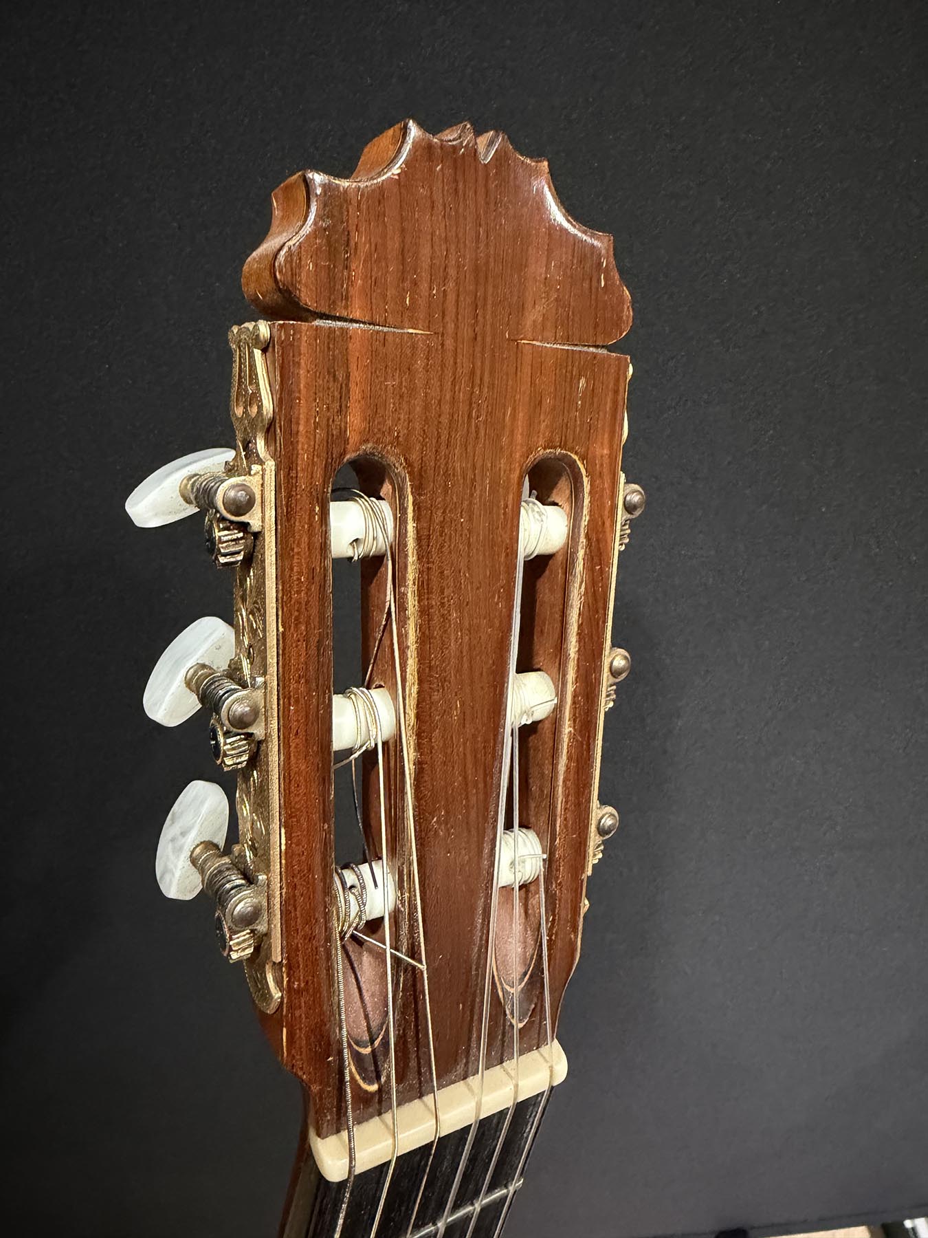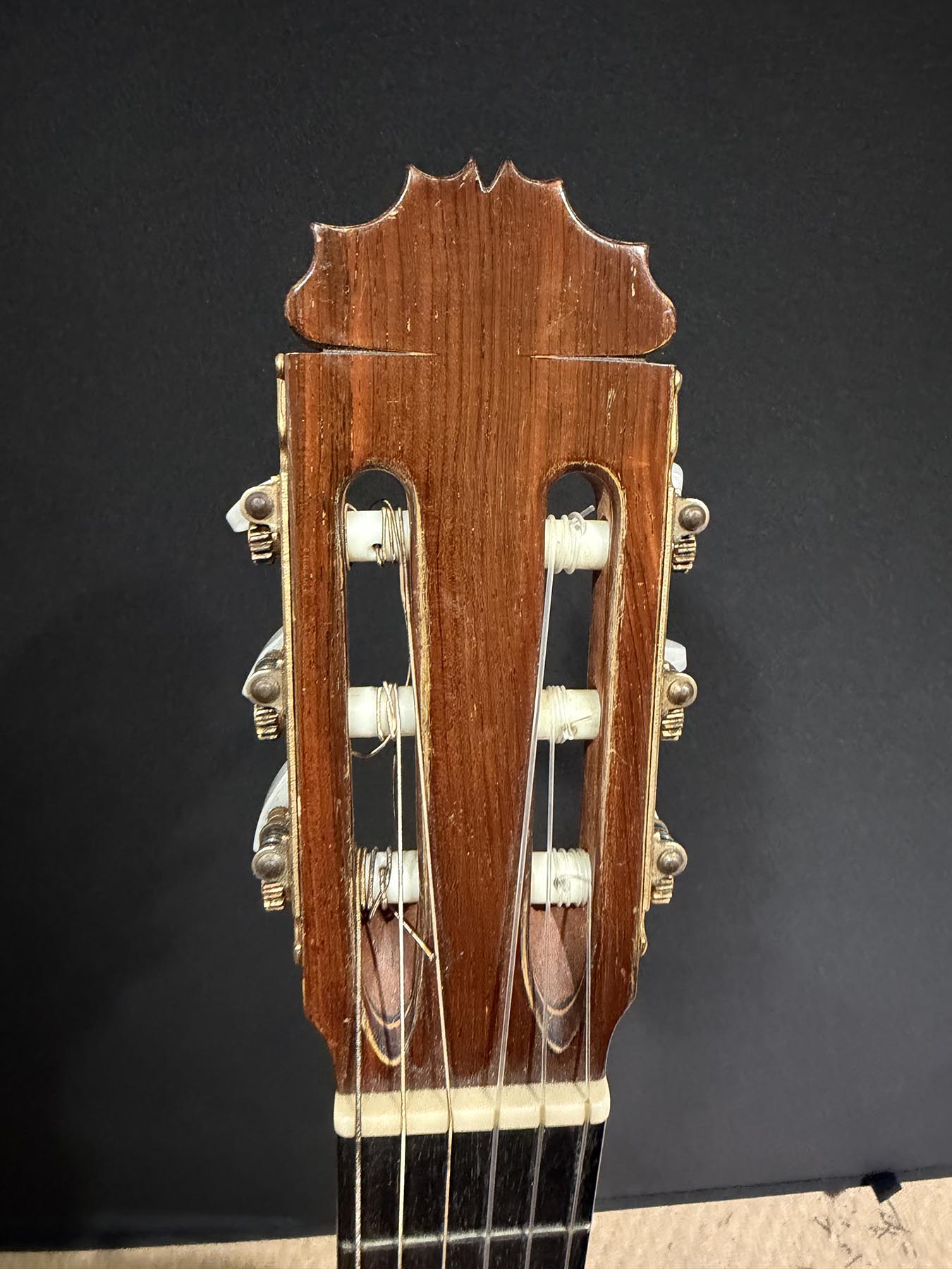 Sweet 60’s Ramirez Blanca, stamp “I.M.” Super clean inside I note no repairs or cracks, likely finish was polished at some point in it’s life, some light playing wear and a mark here and there but otherwise clean, easy to play and light as a feather.